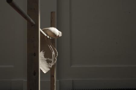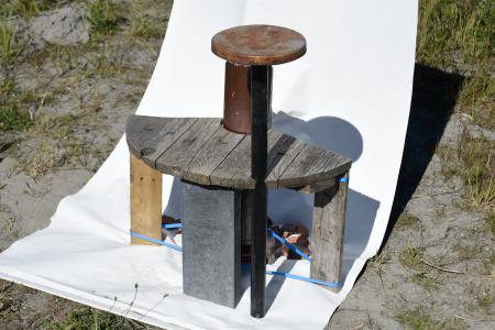 Het monteren van de sculpturen voor documentatie. Foto gemaakt door Dustin James