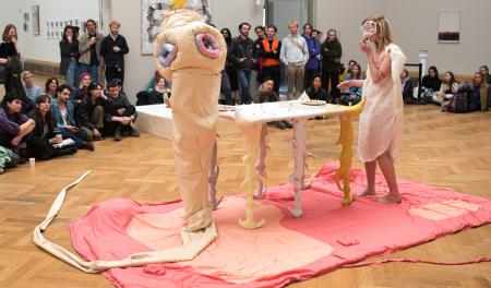MAMMAL is a performance by Jojo Knowles about boredom and eating onions. The performance questions the human things that captive animals are forced to do for human entertainment. On Friday 6 February, MAMMAL can be seen during the three-day performance festival COME TOGETHER. The program is curated through a chain-curating principle, where makers invite other makers.