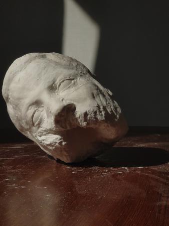 Premonition is a of 12 plaster casts of a digitally sculpted and then printed self-portrait. Each of the heads is approximately the size of my own and each has been disfigured through a repetitive process of either driving a steel rod through them with a hammer or repeatedly striking them with a crowbar in patterns that mimic real facial injuries sourced from medical journals. Through this series I explored a more metaphorical obsession with the conceptual destruction of the self as a true and believed entity through the physical destruction of my likeness through an intensely physical, labour intensive process. Adding to this, in creating the likeness, it was important to me to sculpt rather than scan my head before printing it, producing a cast of a print of a “hand” rendered digital object. Like with the self, both the crafting and destruction of these objects needed to feel labour intensive and time-consuming.