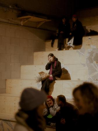 People Watching is een installatie bestaande uit drie kamers, een woonkamer, eetkamer en keuken, en zes figuren gemaakt van schroothout, evenals een archiefvideowerk. Het maakt deel uit van een groter onderzoek naar het theater dat betrokken is bij de performance van een zelf. Het zelf als performance kan worden begrepen als alle aspecten van het zelf die extern worden gepresenteerd. De zes figuren van schroothout bestaan in hun eigen geconstrueerde huiselijke ruimte, bestaande uit een woonkamer, eetkamer en keuken. De figuren functioneren, op een vergelijkbare manier als poppen, in wezen als menselijke surrogaten, met de vorm en het potentieel om als mens herkend en begrepen te worden en bestaand in een menselijke ruimte, maar zonder enige vorm van wil of verlangens. De pop is een levenloos object. Hij bestaat alleen als een entiteit die tijdens de performance ondervraagd kan worden en aan het einde van de performance weer in een levenloos object wordt getransformeerd. Binnen hun theatrale ruimte worden hun levenloze lichamen van kamer naar kamer gemanoeuvreerd, ten opzichte van elkaar geplaatst, om het idee te wekken dat ze geen levenloze poppen zijn, maar levende performers met relaties, persoonlijkheden en wensen. Op de televisie in de woonkamer verscheen een compilatie van fragmenten van door de overheid gemaakte en eigendom van de Amerikaanse Nationale Archieven, met fragmenten waarin een of meer personen, die zich vermoedelijk gedragen zoals ze gewoonlijk doen, beseffen dat ze gefilmd worden en zich vervolgens herpakken in de wetenschap dat ze bekeken worden. Op dat moment wordt de persoon zich volledig bewust van zijn of haar performance en moet hij of zij zich voordoen als wie hij of zij is, net als acteurs op een podium. De film is gemaakt als onderdeel van mijn onderzoek naar het zelf. In dit geval specifiek naar het zelf als performance, en dat, als performance, ontstaat pas wanneer het wordt waargenomen. De dingen die iemand voor waar houdt over zichzelf, kunnen alleen manifest worden in de wereld buiten zichzelf door het vertonen van specifieke cultureel herkenbare betekenissen die specifieke identiteiten, disposities en verlangens aangeven. Om het samen te stellen, heb ik honderden video's doorgenomen op zoek naar dat ene, delicate moment waarop een transformatie plaatsvindt tussen een zelf dat zich niet bewust is van het feit dat het wordt bewaakt en een zelf dat dat wel is. Foto: Eric de Vries
