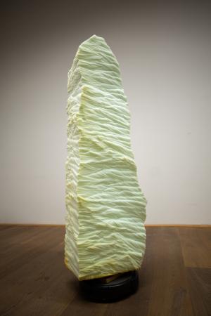 De installatie ‘Earthen Kin’ is geïnspireerd op het kunstenaarserfgoed van de Khasi-stam (Meghalaya, India), waar oude monolieten fungeren als zowel heilige overblijfselen van voorouderlijke verering als geologische verwanten. Veel folklore is rijk aan verhalen over steen en aarde. Deze kinetische sculpturen vestigen de aandacht op stenen als dynamische, interactieve entiteiten. Laat deze sculpturen je leiden naar een diepere verbinding met de levende materie van het geologische rijk.