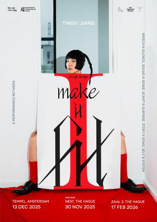 On 30 November, Jiang's multidisciplinary performance Make It Fit – A Life Script will be part of the AM.PM.AM weekender at Nest in Laak. She explores the meaning of fitting in and how authority, identity, and social norms are constructed through language. Also on show on 13 December at Tempel and on 17 February 2026 at Zaal 3.
