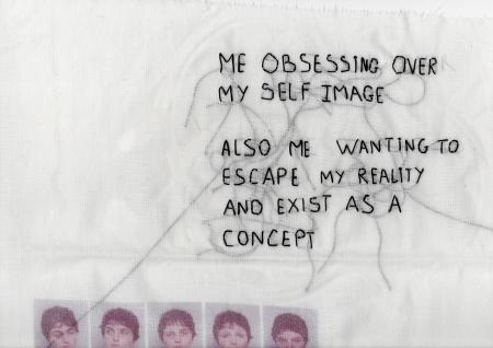 In this subversive exploration, stereotypically feminine craft techniques like embroidery and textiles are used in a repetitive and manual way to develop the idea that repetition provokes changes. The installation manifests as a network of objects, visuals, and texts, all interwoven to reflect the interconnected reality of the girls’ online existence and its impact on the physical world but also as a refusal to be completely perceived by an outsider audience.